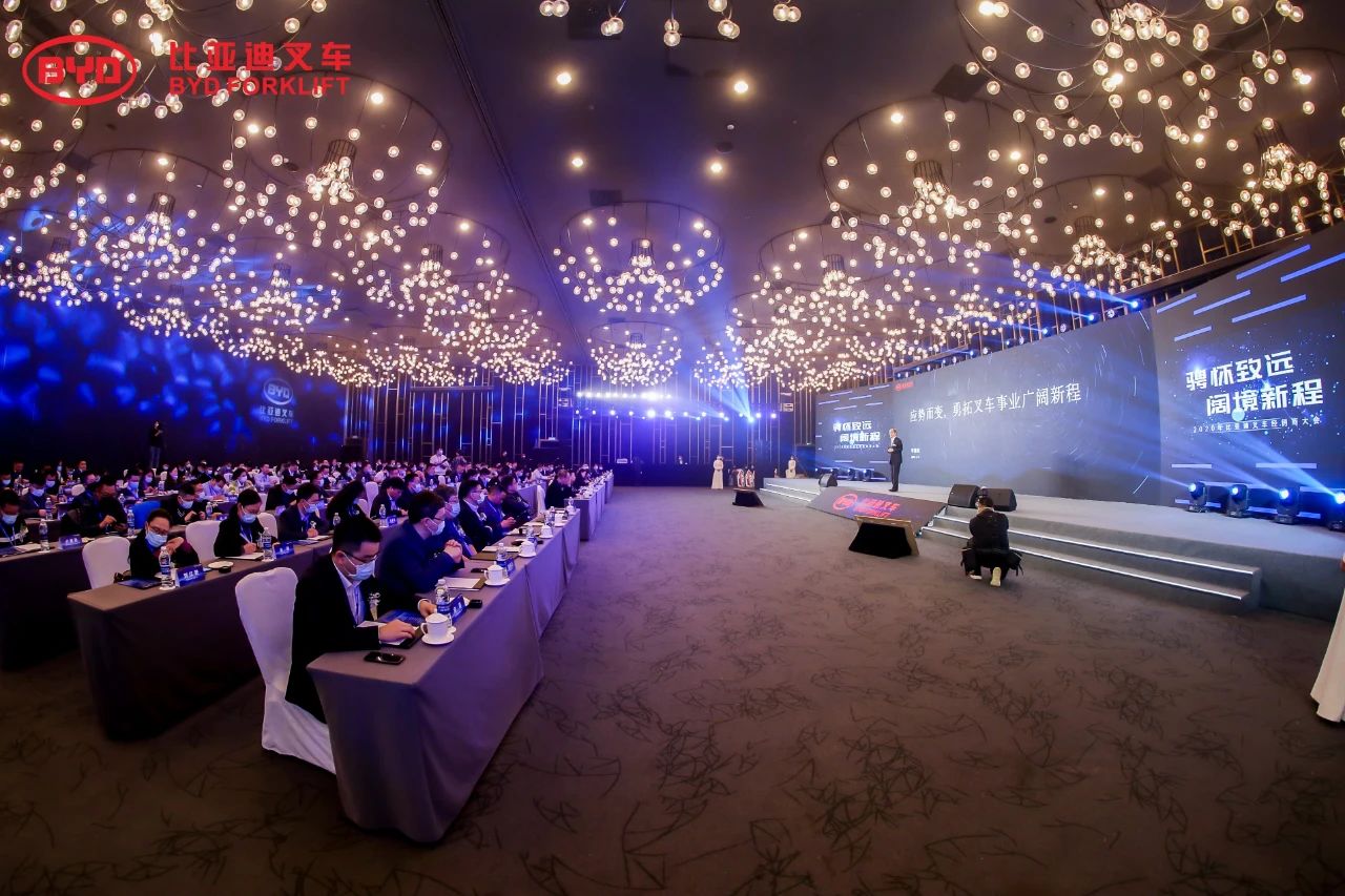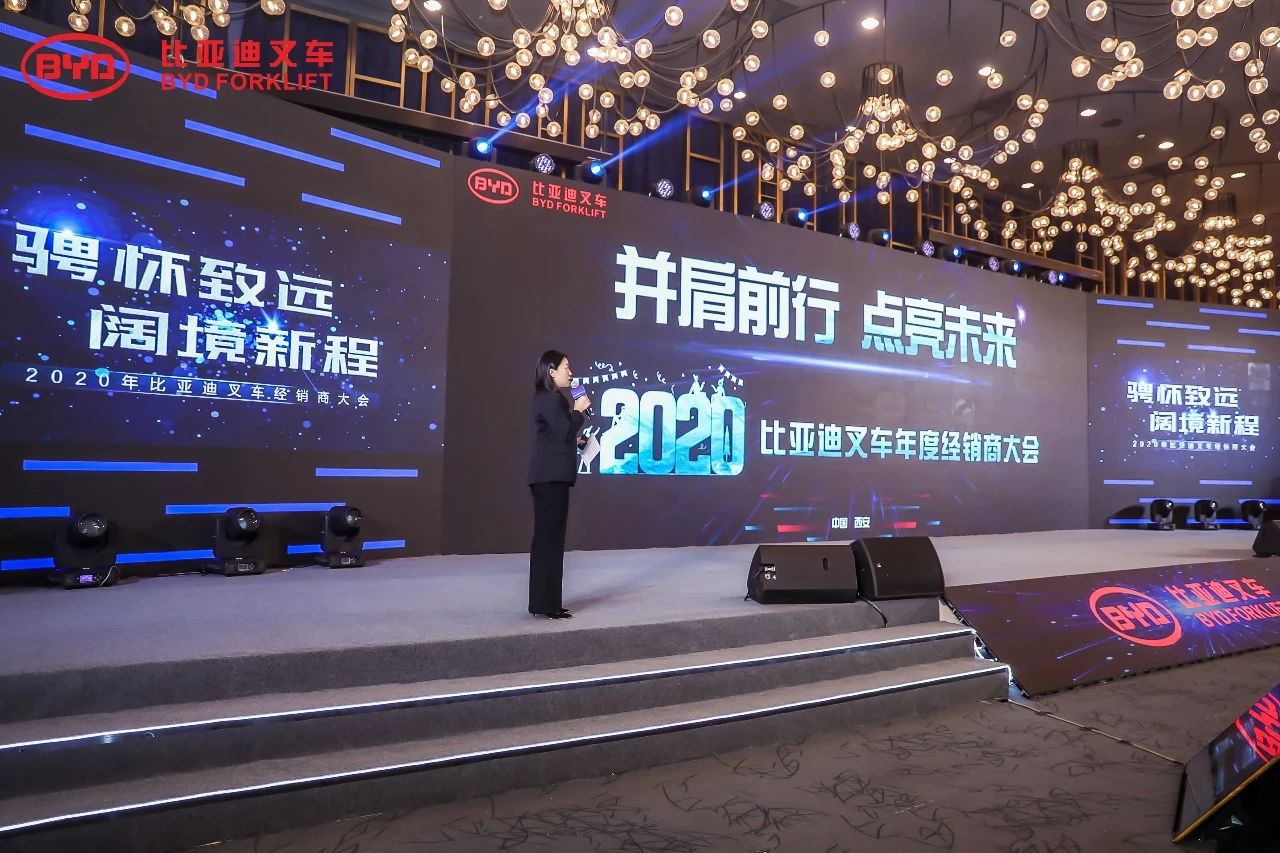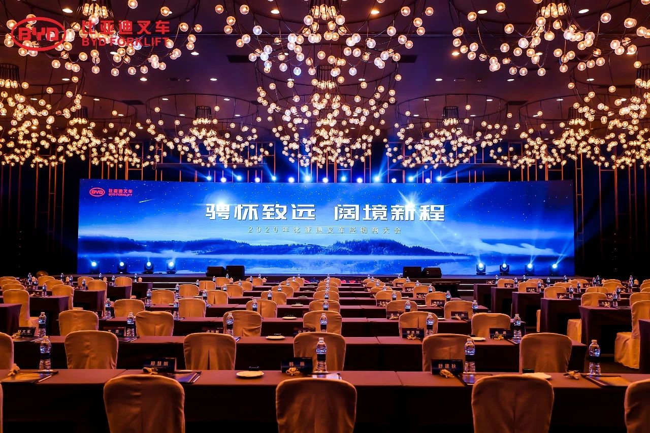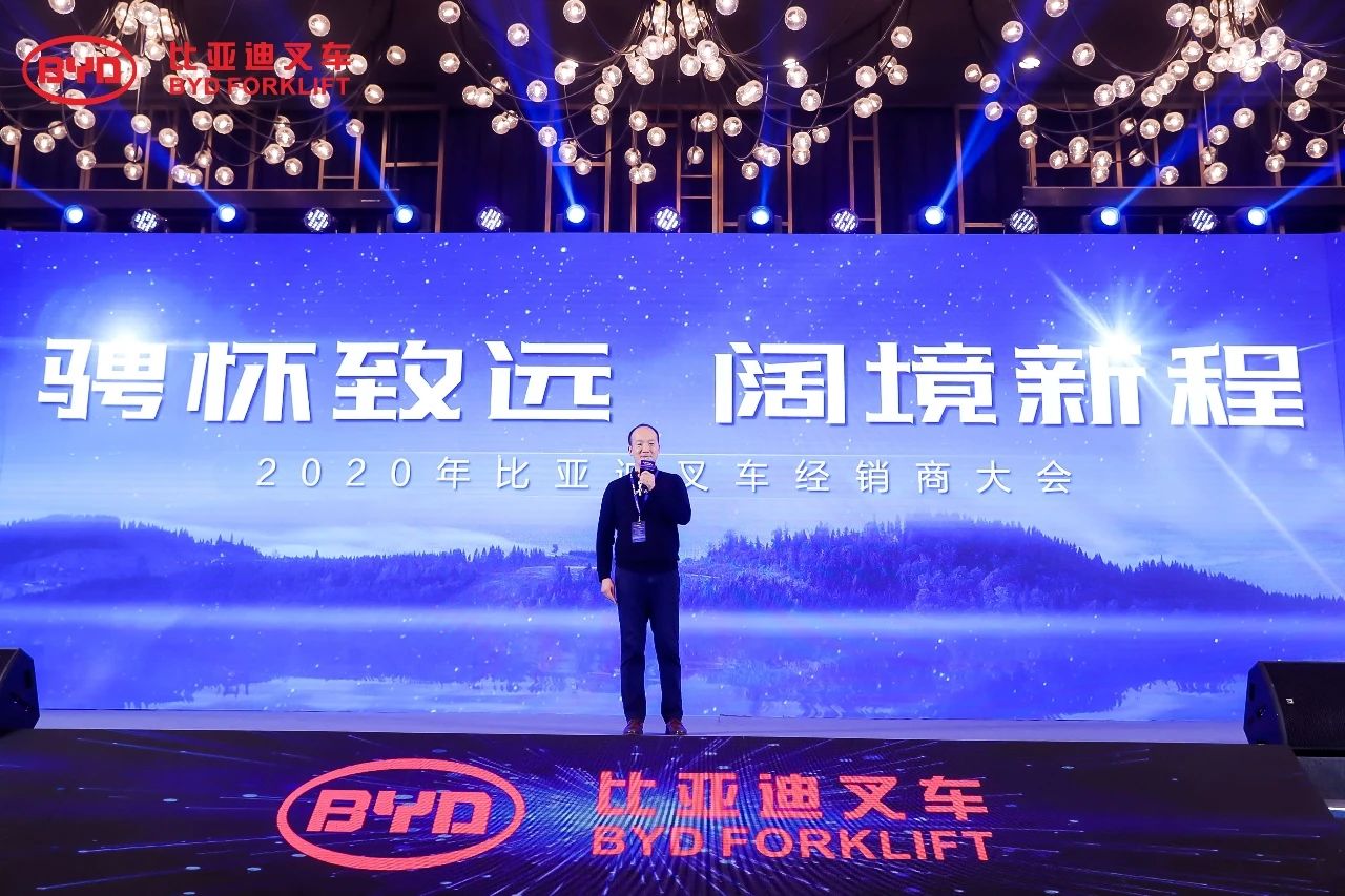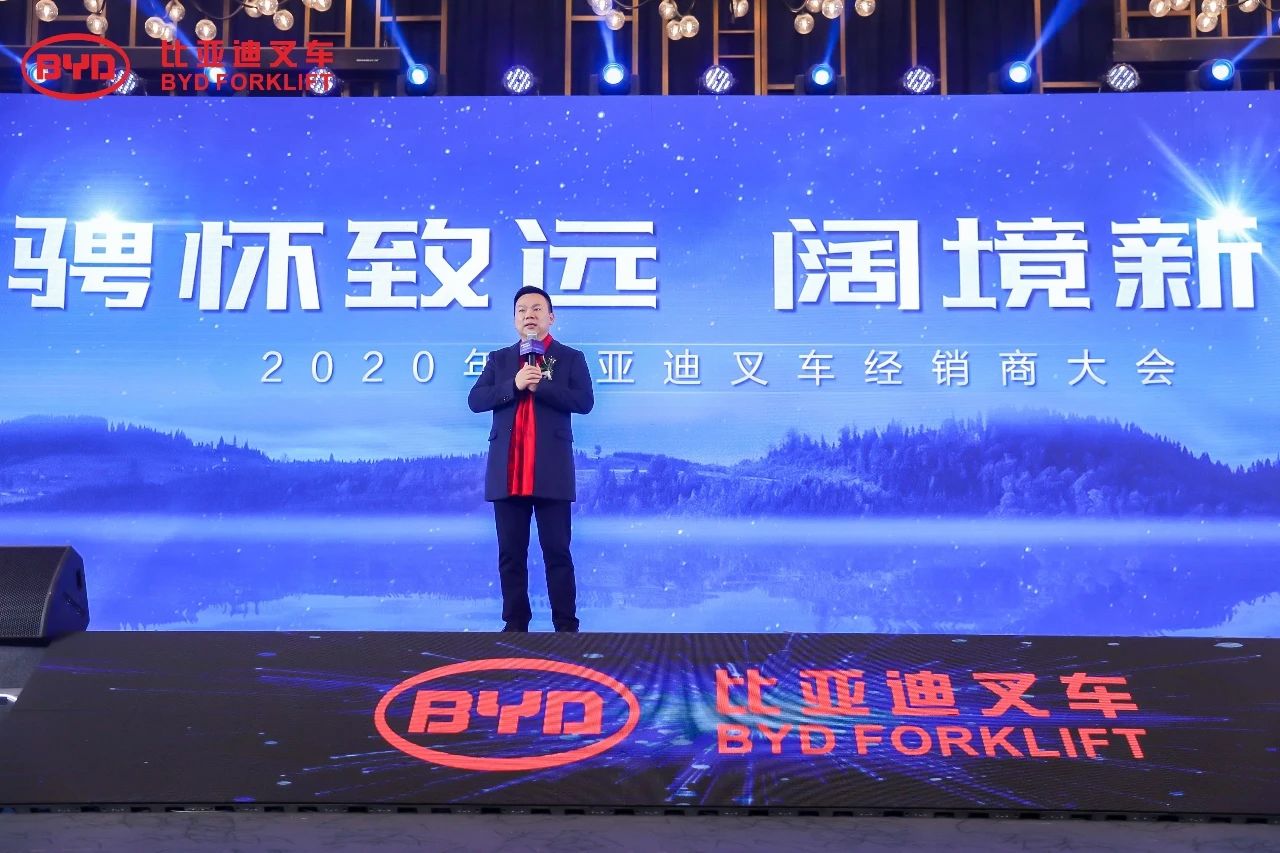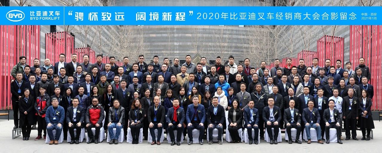 1月6日,以“騁懷致遠,闊境新程”為主題的2020年比亞迪叉車經銷商大會在陜西西安隆重召開。比亞迪叉車總經理畢國忠先生與事業部各高層領導,以及全國各地的杰出經銷商代表、行業協會、媒體朋友們歡聚一堂,共同分享喜悅、見證榮耀,展望新能源叉車的未來發展宏圖。