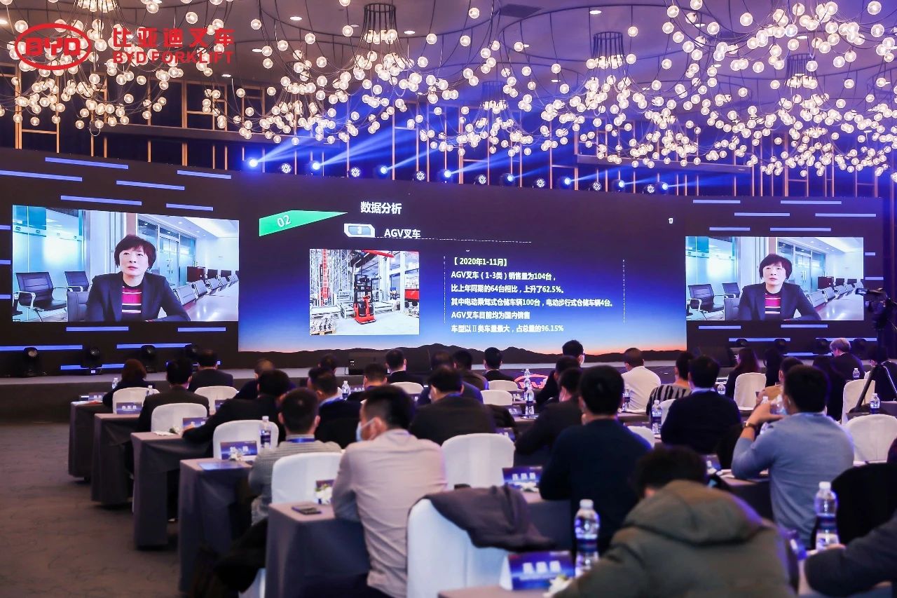 隨后比亞迪財務處銷售融資蘭微總監分享了過去一年叉車銷售融資成果,并對2021年叉車銷售融資給予規劃和建議。
