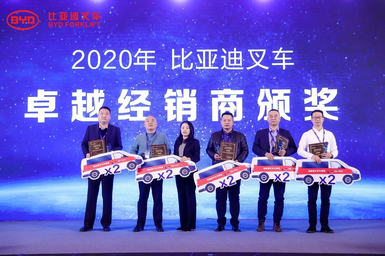 大會同時頒發了非凡營銷獎、卓越經銷商獎項,也對在2020年銷售業績表現突出的經銷商進行了獎勵,以感謝他們對比亞迪叉車發展做出的杰出貢獻。