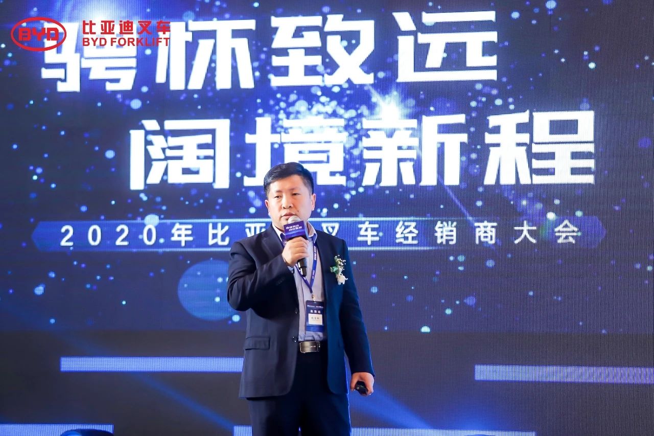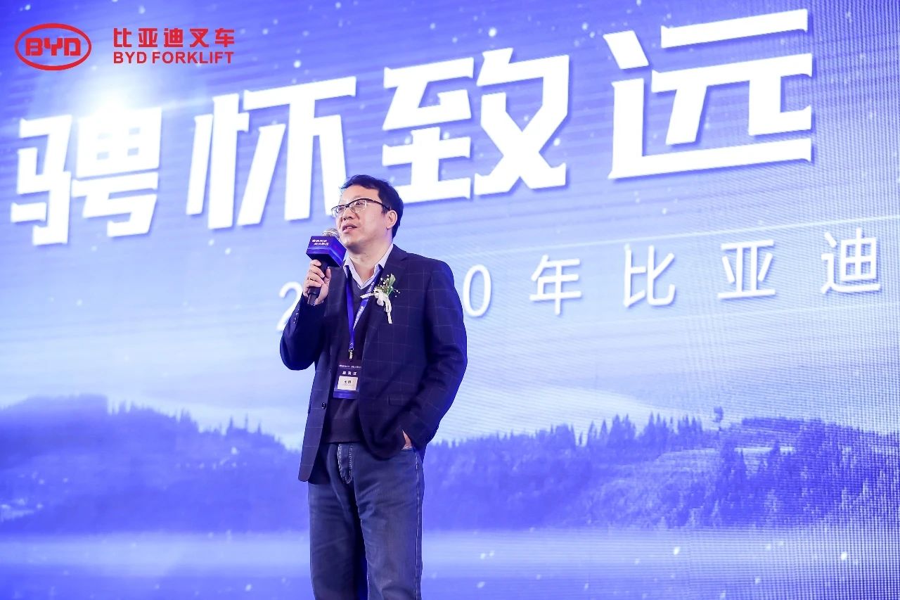 接下來,由比亞迪叉車總經理畢國忠先生致辭,畢總首先對在座嘉賓的蒞臨表示感謝,并指出2020年受疫情影響,對諸多行業來講都是較為艱難的一年,但比亞迪叉車在此種市場環境下,依然實現了逆勢增長,面對洶涌的浪潮和百變的形態,我們依然堅守于產品本身的價值。