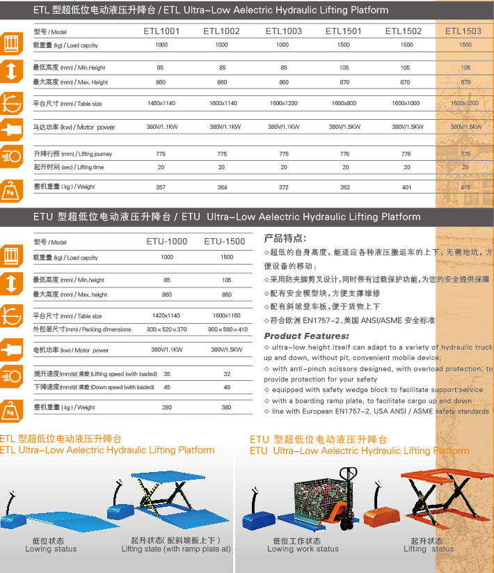 超低的自身高度,能適應各種液壓搬運車的上下,無需地坑,方便設備的移動;